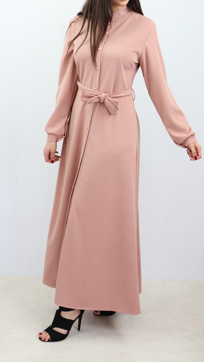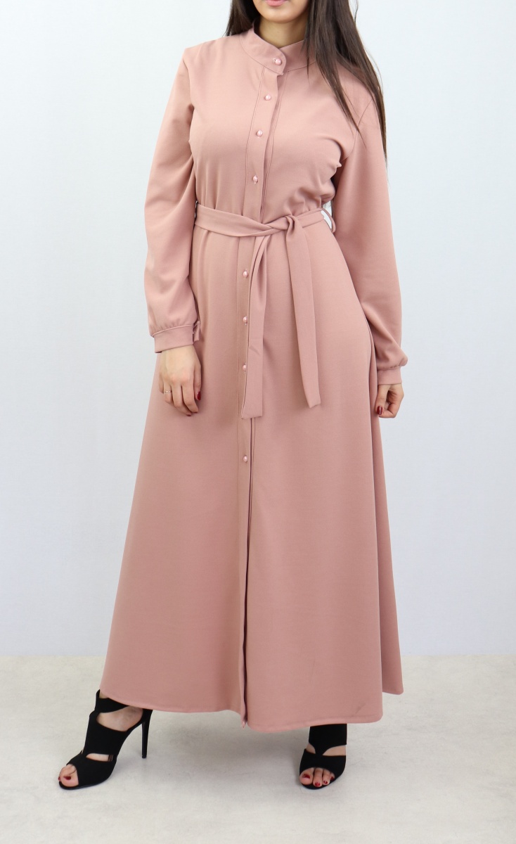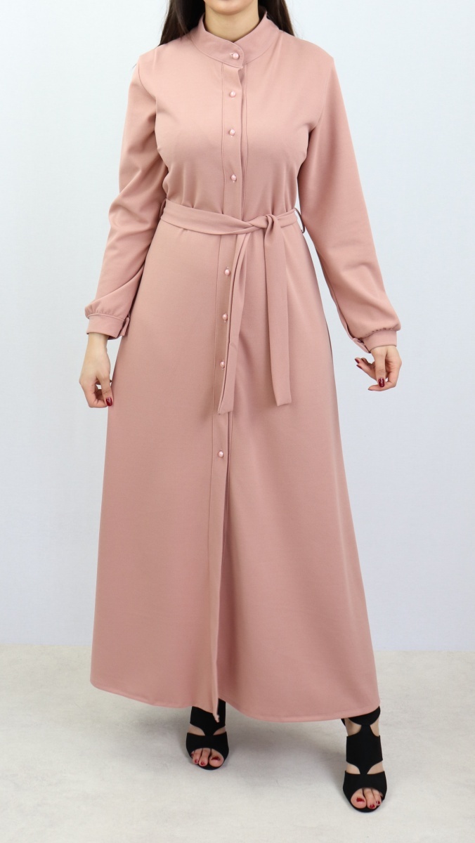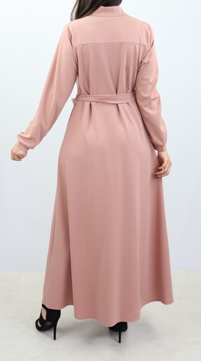 Robe chemise entièrement boutonnée avec ouverture sur toute la longueur. Vous pouvez la porter fermée ou ouverte selon vos envies, avec ou sans la ceinture assortie entièrement amovible. Manches longues avec boutons. Tissu assez épais et fluide (toute saisons).