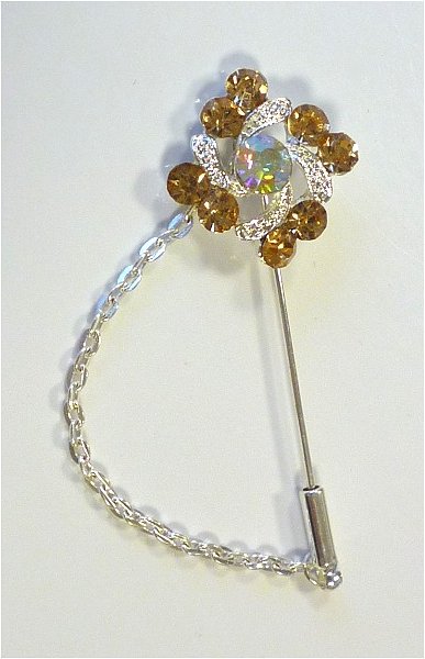 Épingle argenté pour Hijab avec diamants. Le dimant du milieu est toujours blanc cristal et ceux autour peuvent changer de couleur.